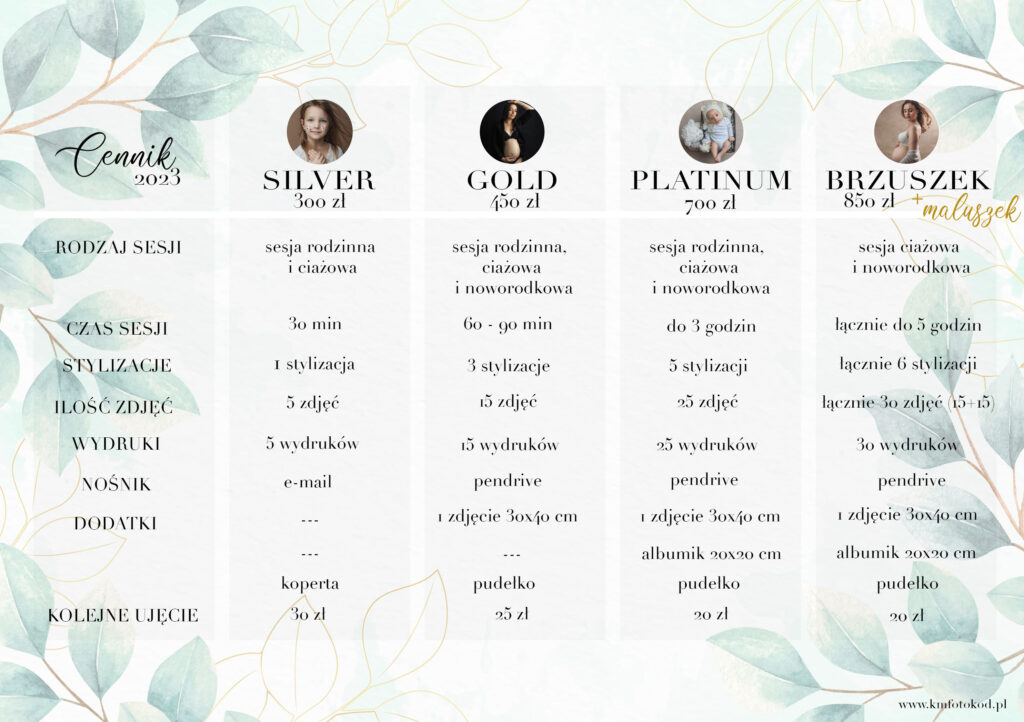 Ceny pakietów zdjęciowych uzależnione są od rodzaju sesji, ilości kadrów oraz dodatków do sesji, dojazdu czy wejściówek do różnych obiektów. Wiele rzeczy ustalamy indywidualnie. Są stałe pakiety, które możecie sprawdzić poniżej 🙂 A jak macie ochotę to możecie domówić kadry i wydruki, albumy, fotoobrazy, vouchery na prezenty dla bliskich i znajomych. Full wypas 🙂